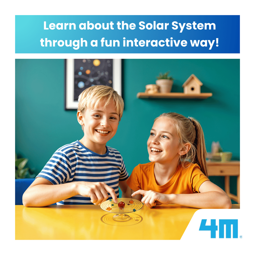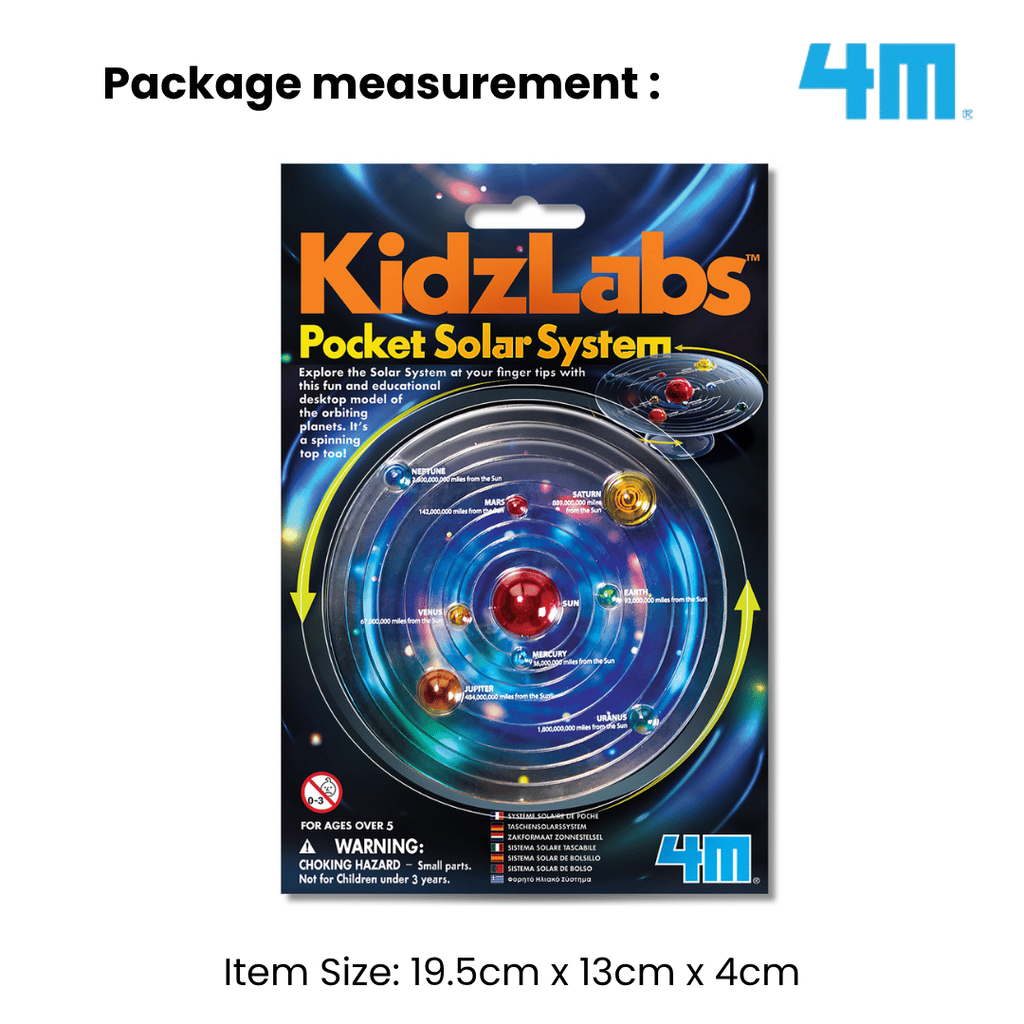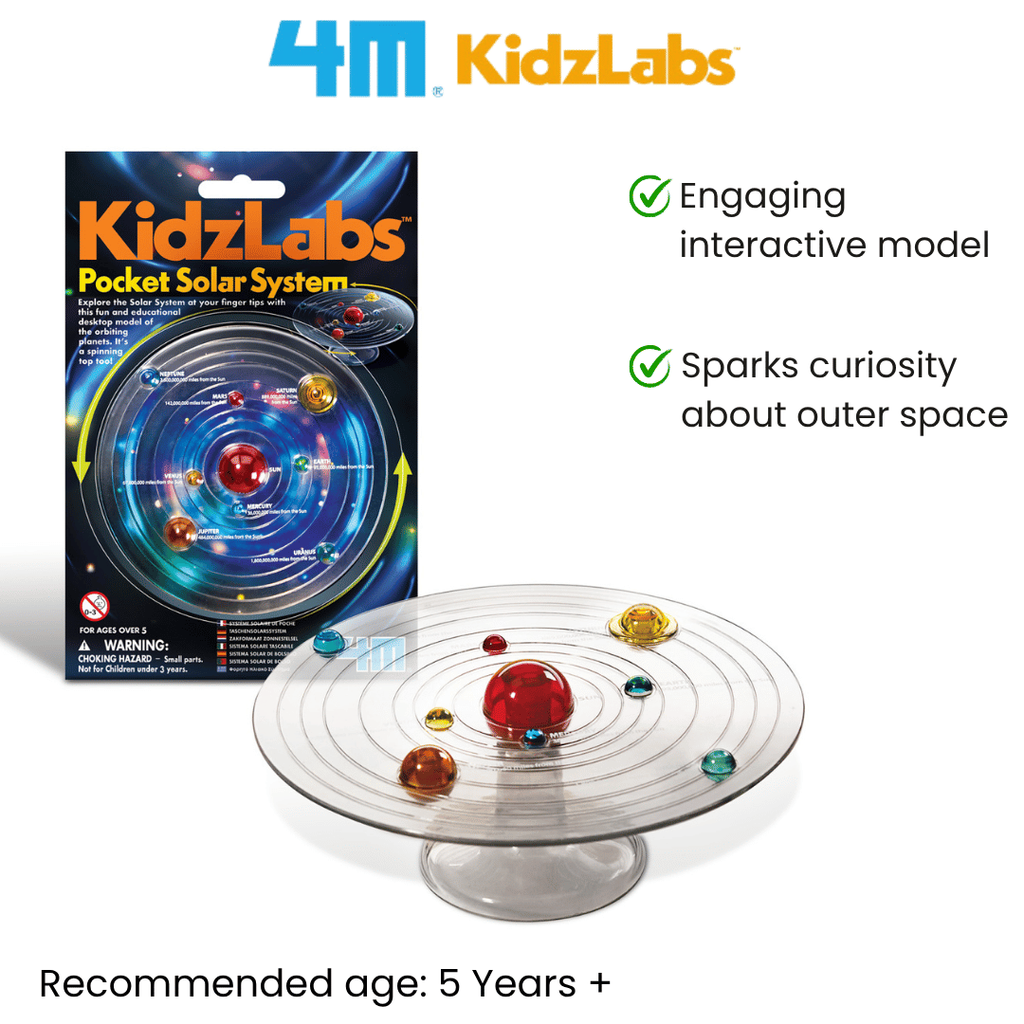The model can spin to mimic the Solar System's rotation, allowing kids to enhance their understanding of planetary orbits. The colourful planets are labeled with names name as well as distances from the sun. With this model, kids can better visualise the Solar System and spark their curiosity about space.