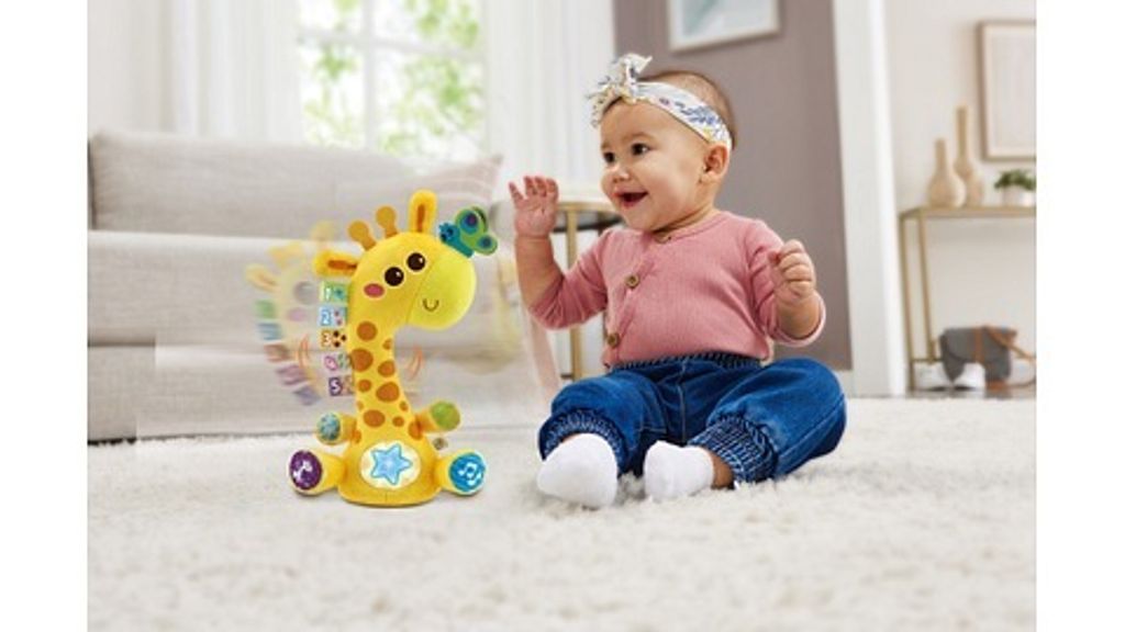 - Giraffe's wiggling dance moves and fun prompts encourage toddler's to play and learn.