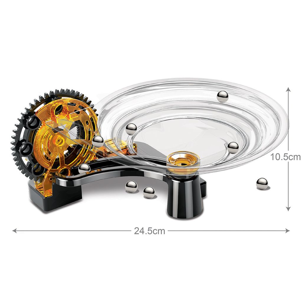 Build this motorised marble run and learn some basic laws of motion. Watch the marbles roll along the track. Explore the concept of gravity as well as different forms of energy such as kinetic and potential energy.