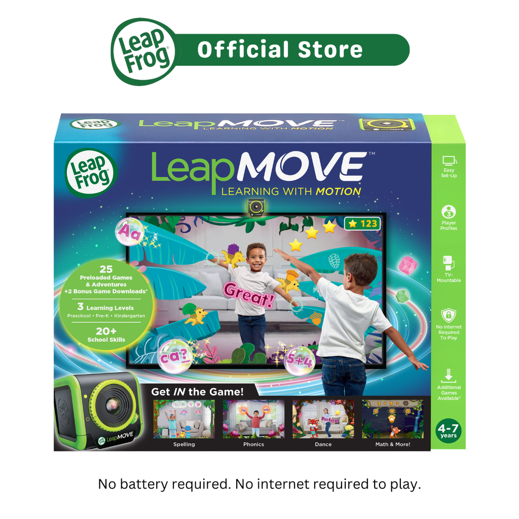 Get in the game and explore the Enchanted Forest in 15 motion-based learning adventures and 10 learning games with three learning levels that explore math, spelling, phonics and more. Recommended for kids aged 4-7 years.