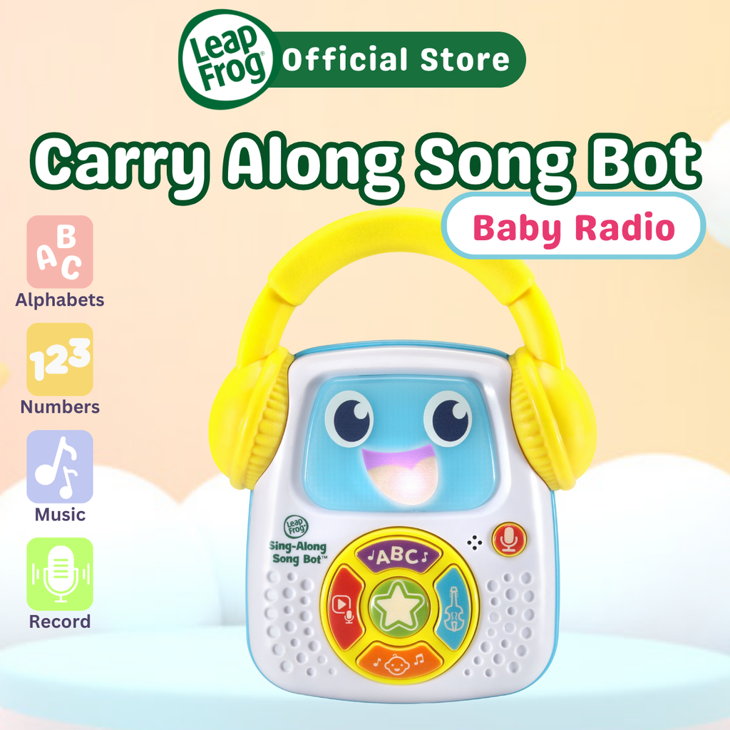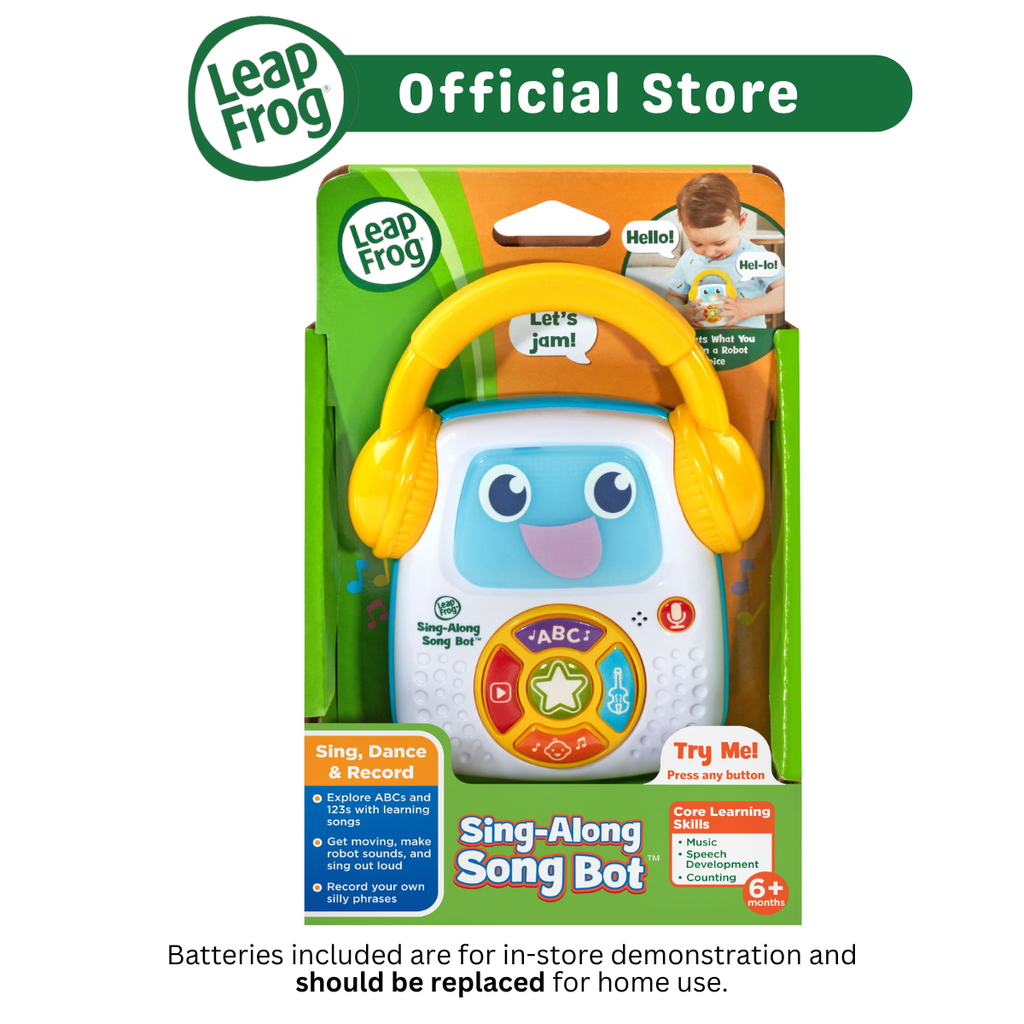 You’re number one on this little bot’s playlist! Grab the robot pal’s headphone-shaped handle and boogie down to popular kids’ tunes like "The Wheels on the Bus" and classical melodies. Sing along to learning jams that introduce numbers, letters and days of the week or get moving to the "Dance and Wiggle" song. It’s showtime! Pressing the microphone button records the voice of your mini superstar and plays it back in four different robot voices. Let’s dance with music on the go. 3 AAA batteries included for demo purposes, recommended to replace with new batteries for regular use.